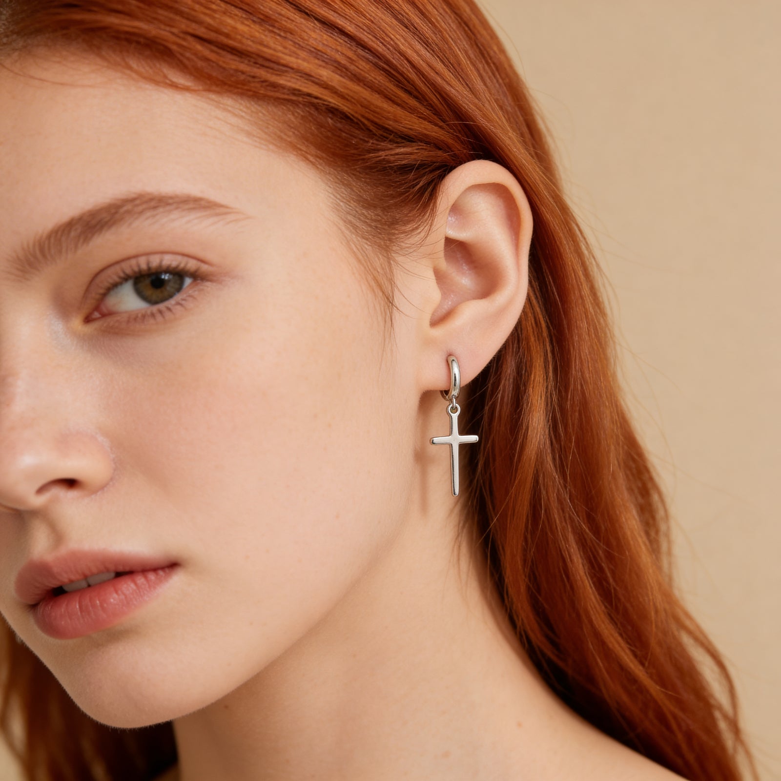 Cross Hoop Earrings – Silver Plated